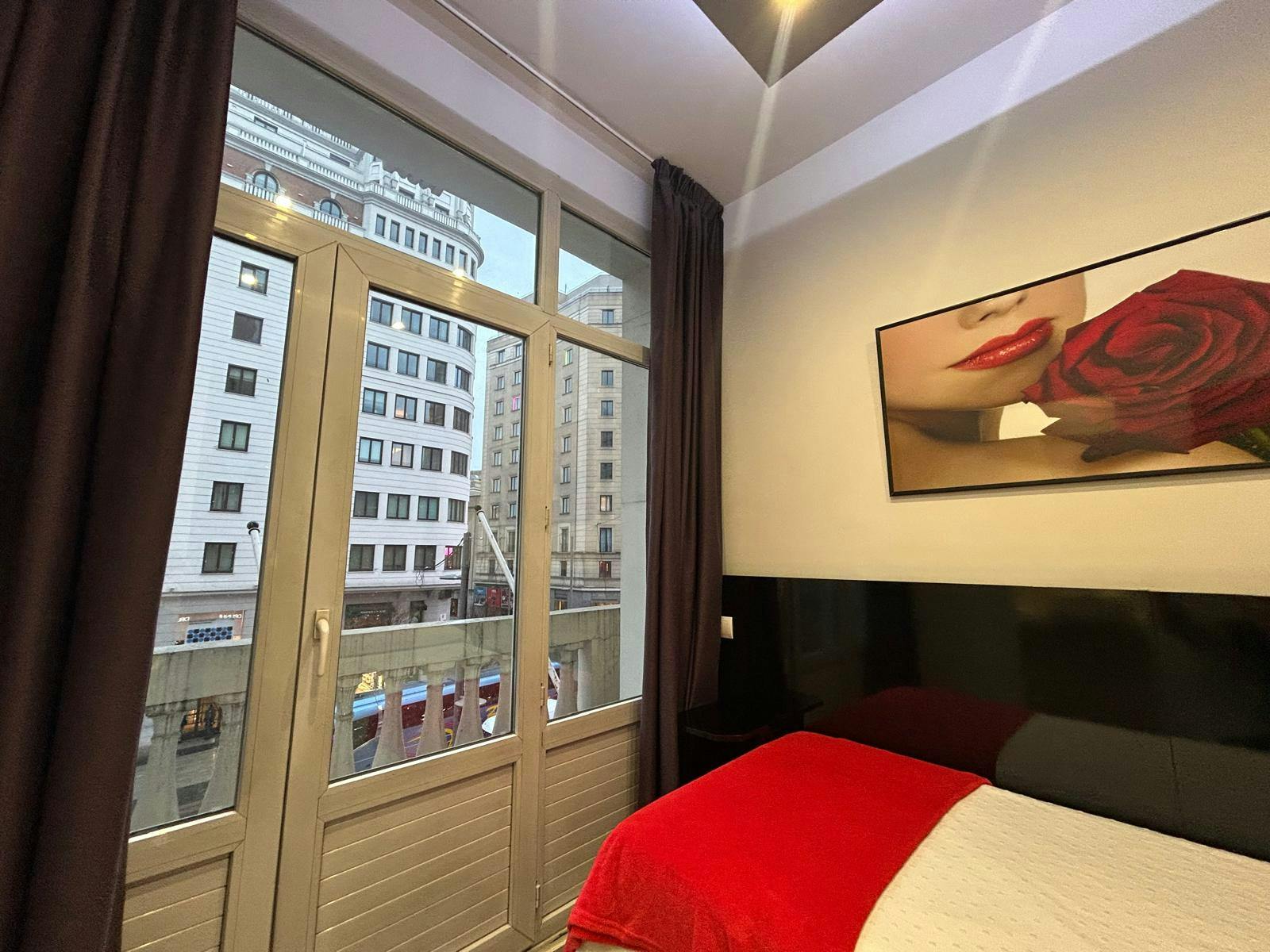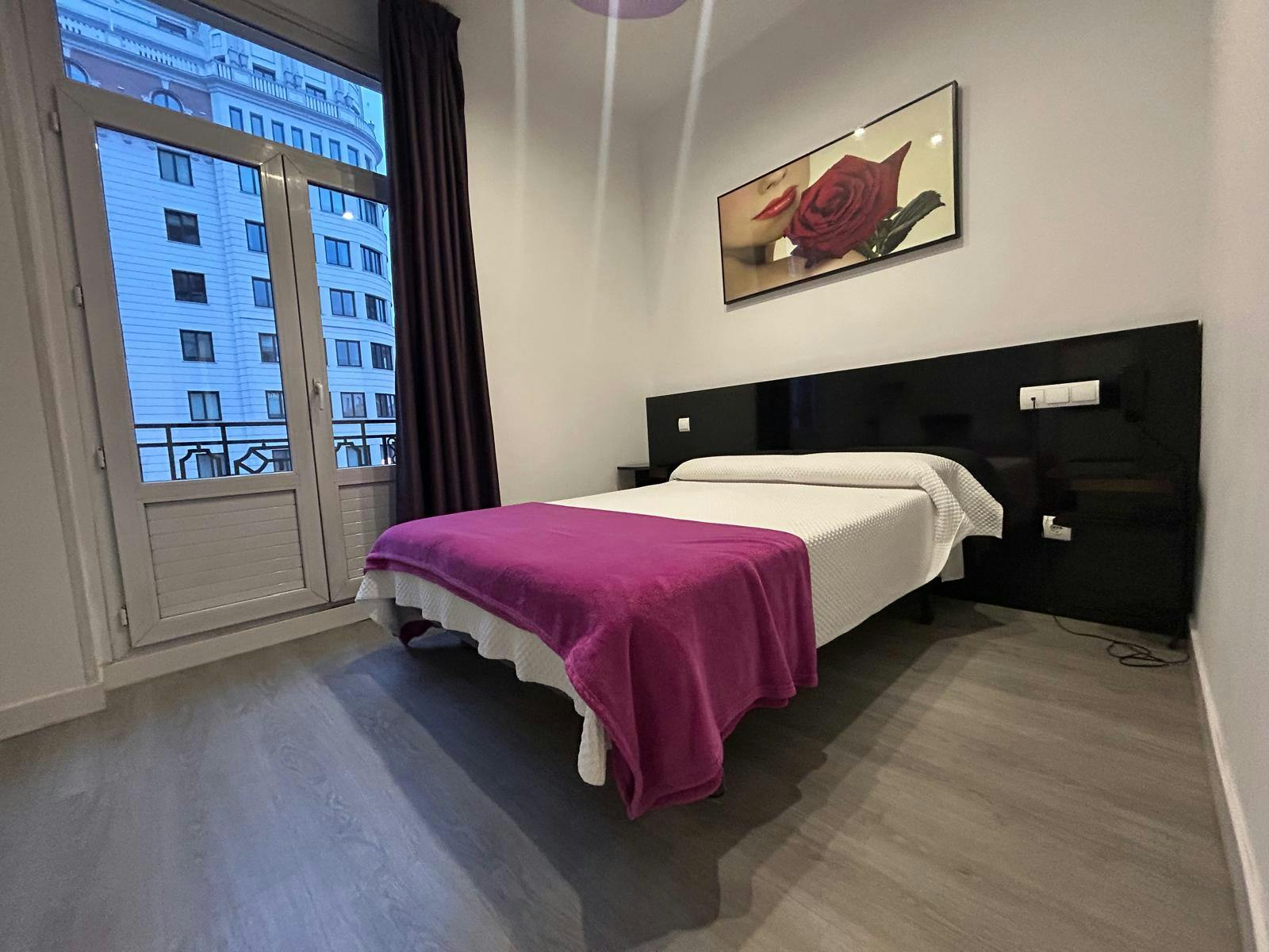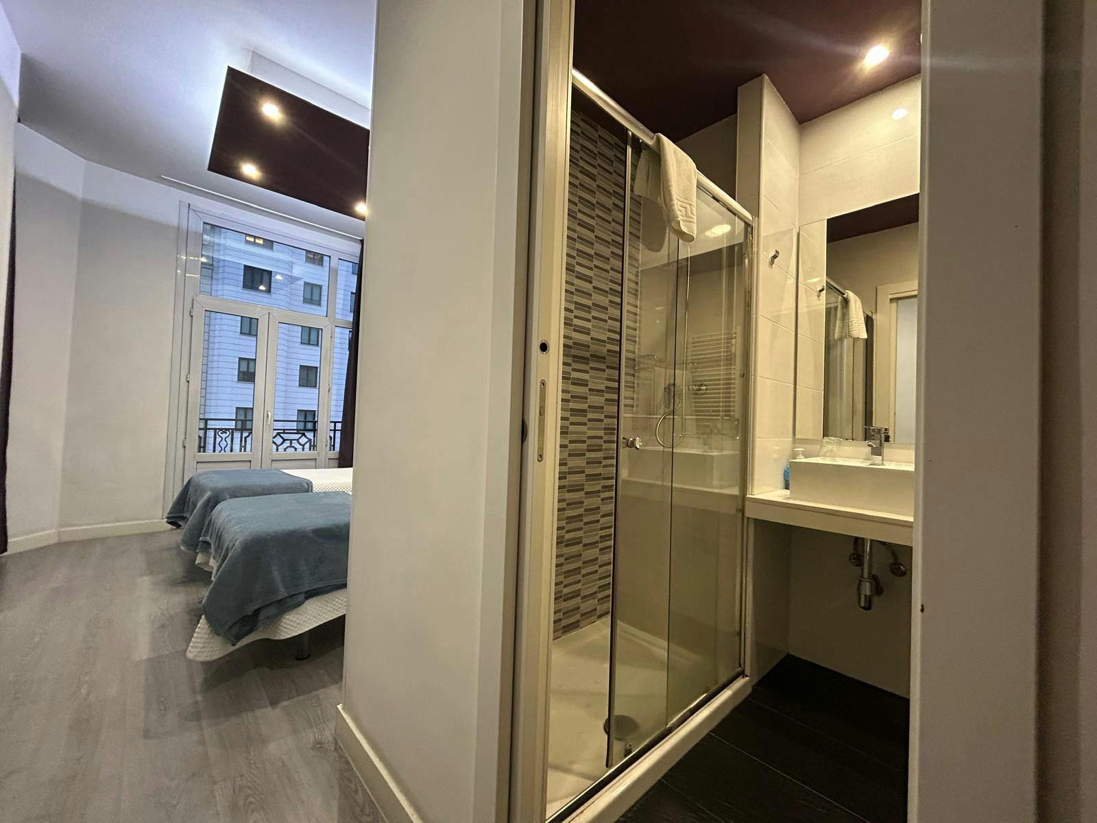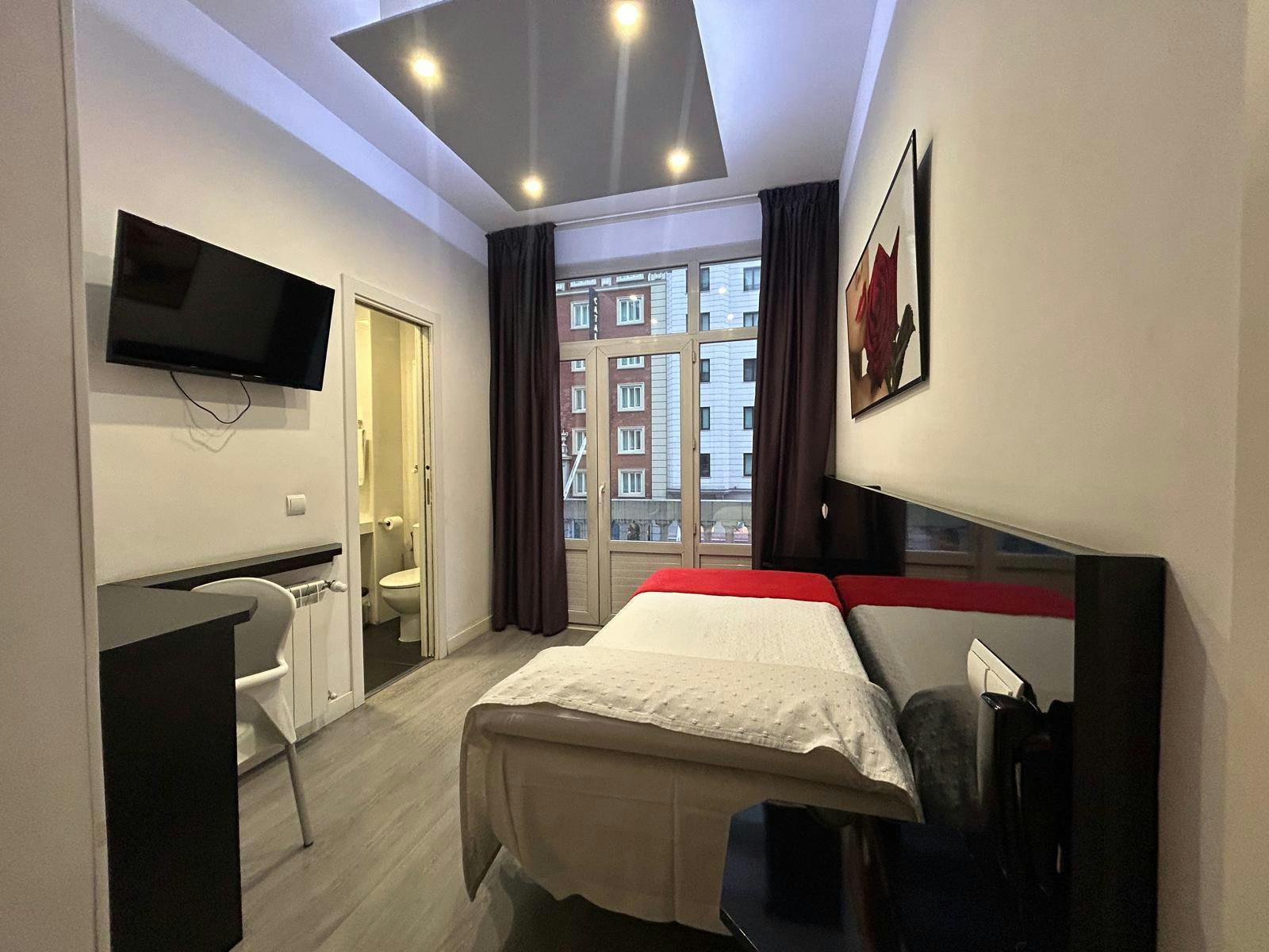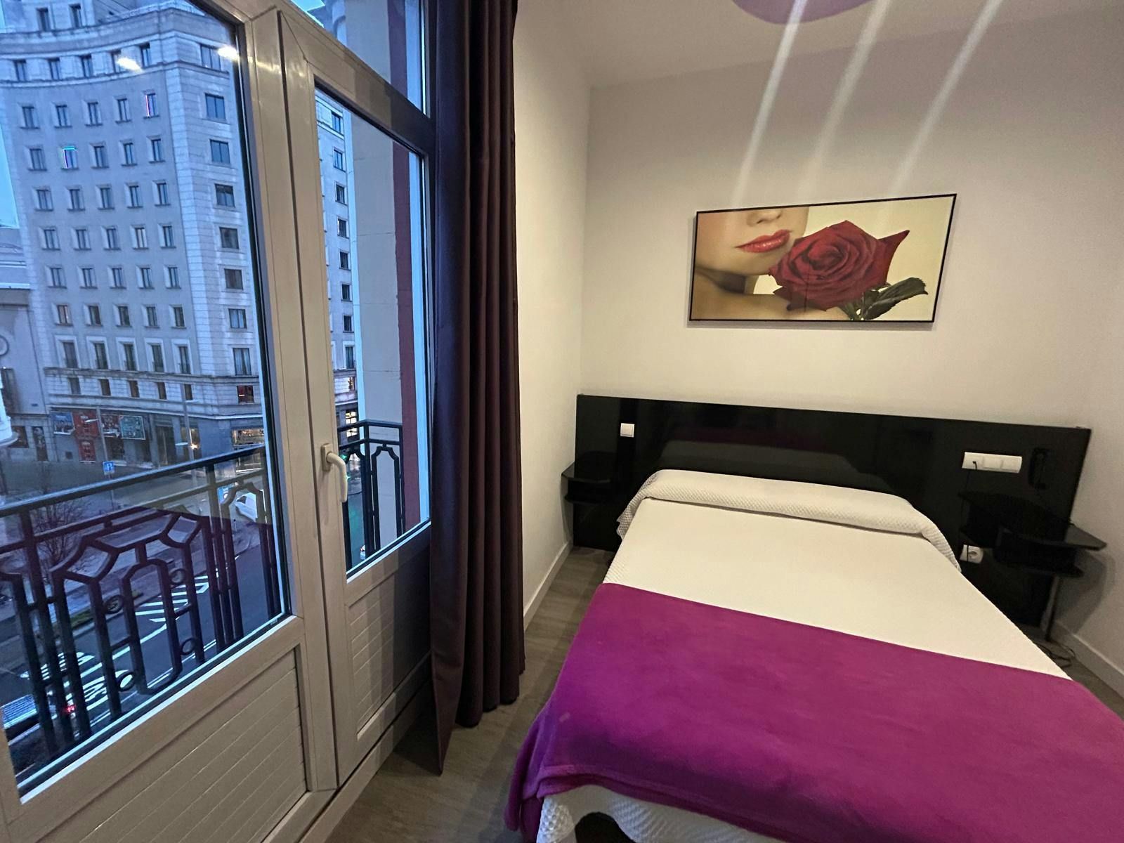 Unbeatable views of Madrid's Gran Vía from this bright and functional single room. It has a 0.90 x 1.90 m bed, a private bathroom with a shower, and daily cleaning service. Its location in the heart of the city allows you to walk to the main points of interest, with excellent transport connections and a wide range of shops, restaurants, and entertainment just steps away. Ideal for both leisure and business trips.