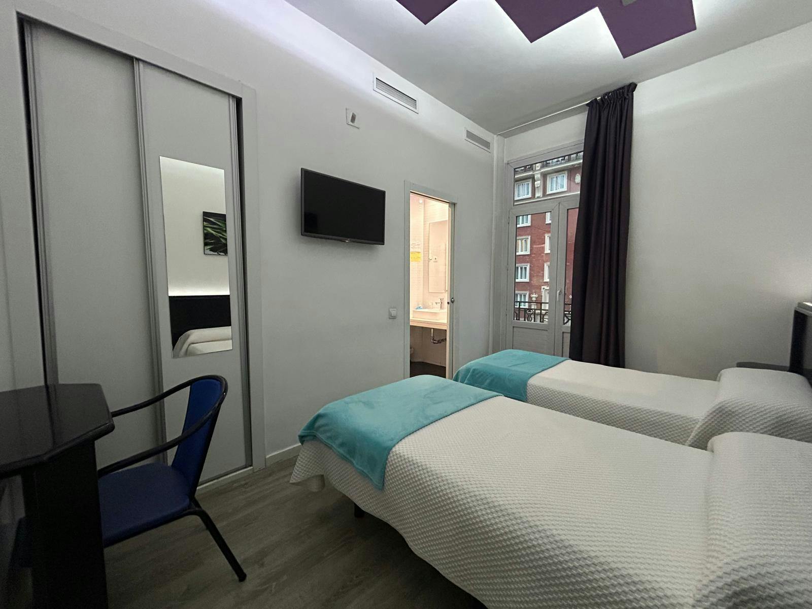 Unbeatable views of Madrid's Gran Vía from this bright and functional double room. It has a 1.35 x 1.90 m bed, a private bathroom with a shower, and daily cleaning service. Its central location allows you to walk to the main points of interest, with excellent transport connections and a wide range of shops, restaurants, and entertainment just steps away. Ideal for both leisure and business trips.