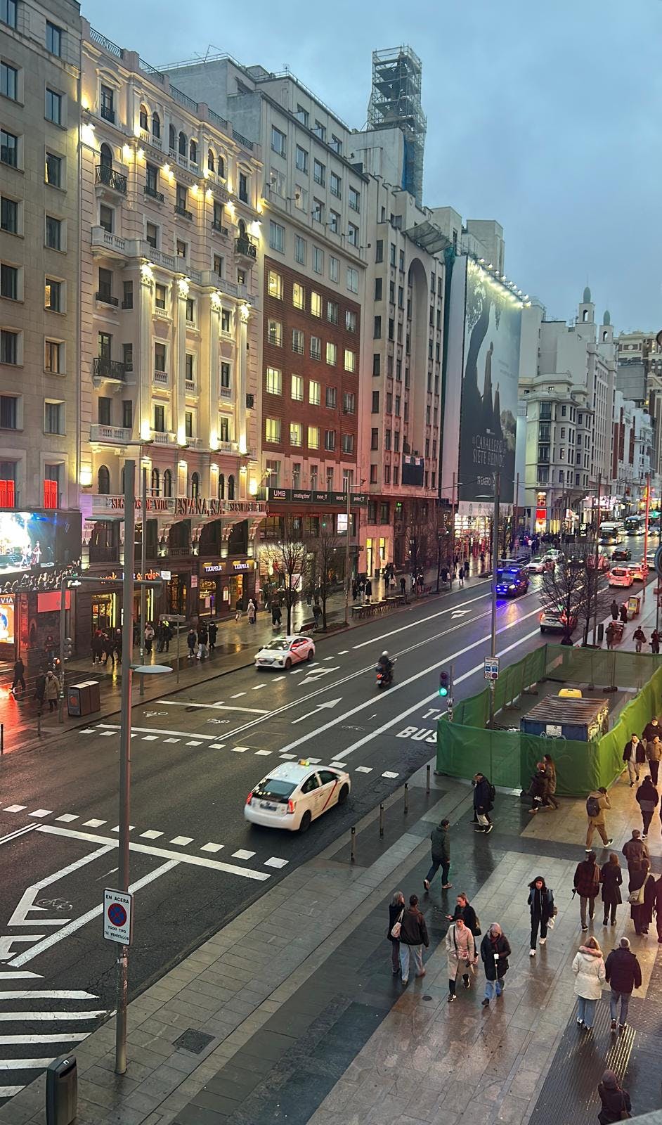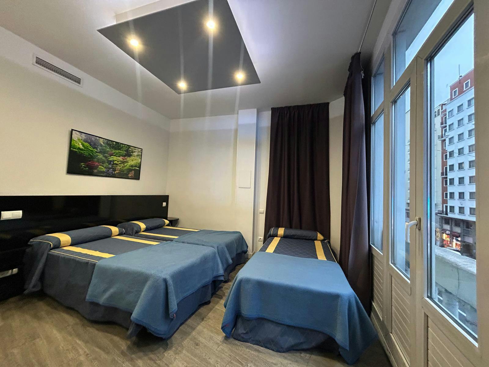 Unbeatable views of Madrid's Gran Vía from this triple room, spacious, bright, and functional. It has three single beds measuring 0.90 x 1.90 m, a private bathroom with a shower, and daily cleaning service. Its location in the heart of the city allows you to walk to the main points of interest, with excellent transport connections and a wide range of shops, restaurants, and entertainment just steps away. Ideal for families, friends, or business trips.