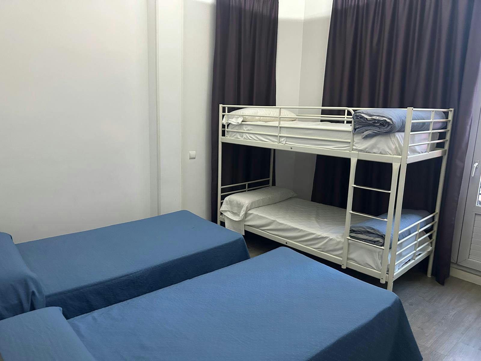 Unbeatable views of Madrid's Gran Vía from this spacious, bright, and functional quadruple room. It has two single beds measuring 0.90 x 1.90 m and a bunk bed with two beds of 0.90 x 1.90 m, as well as a private bathroom with a shower and daily housekeeping. Its location in the heart of the city allows you to walk to the main points of interest, with excellent transport connections and a wide range of shops, restaurants, and entertainment just steps away. Ideal for families or groups of friends.